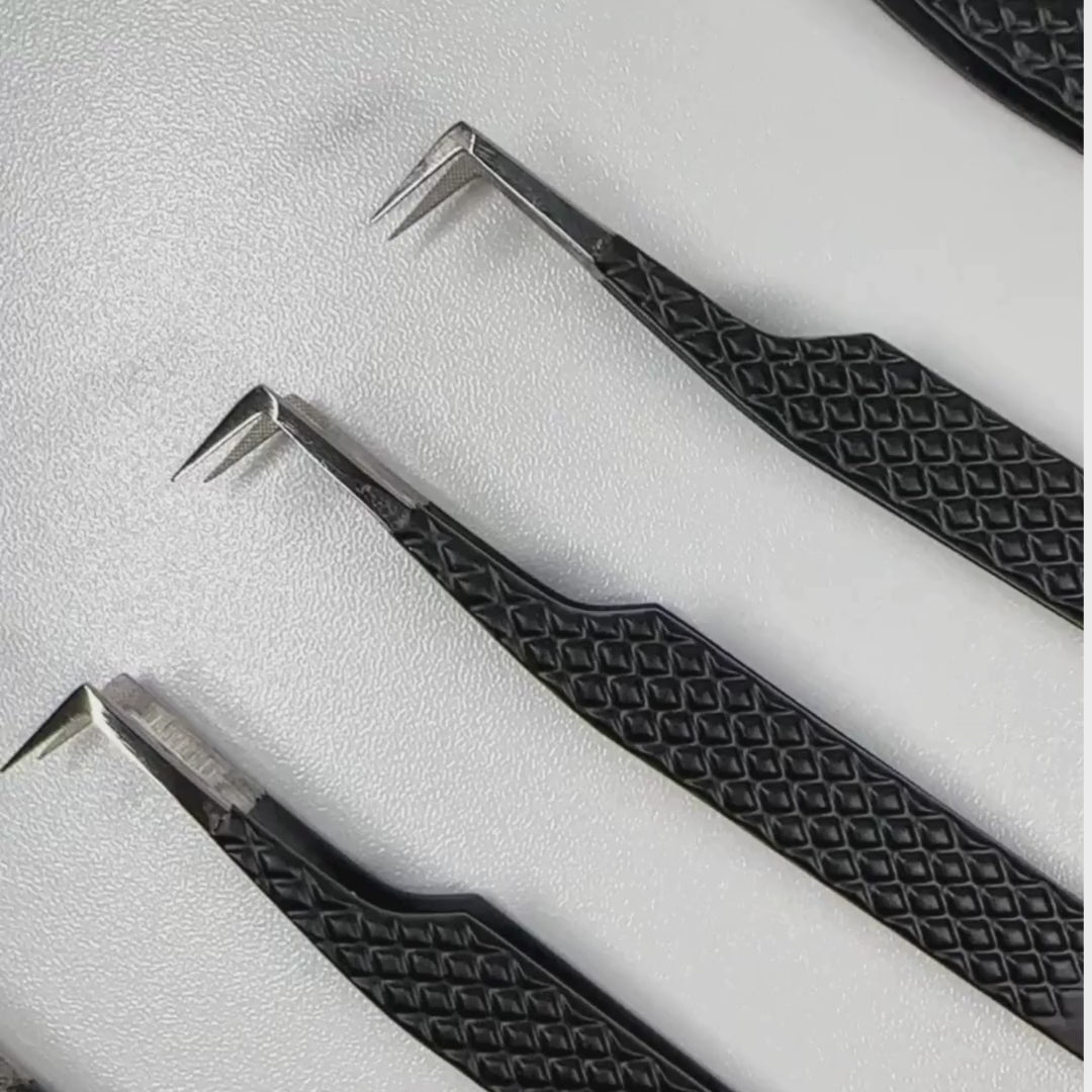 The 90 degree volume tweezer is ideal for grasping lashes of any length. Its nano fiber tip enables unparalleled accuracy and control.